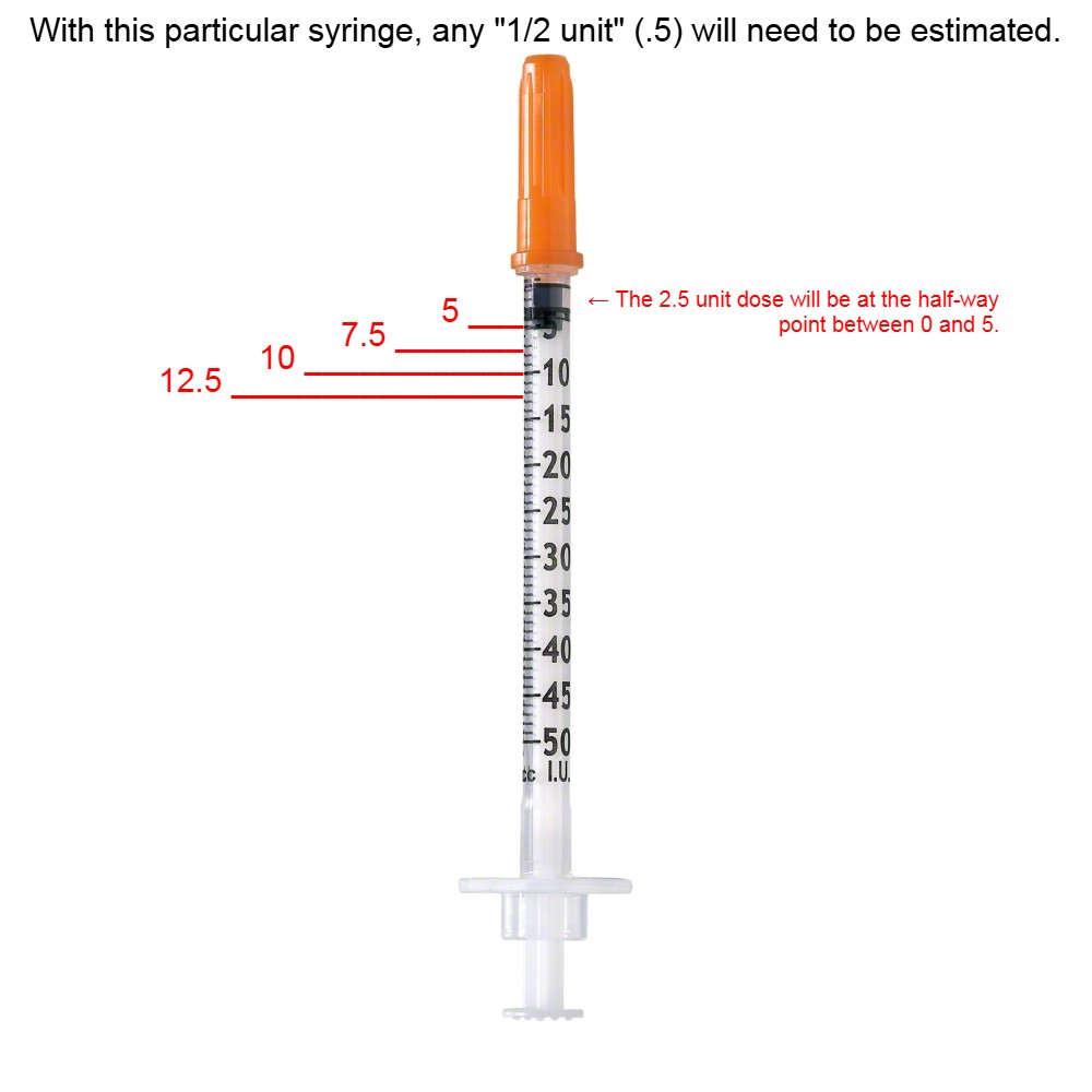 How To Read ½ (.5) units on a 50 Unit Syringe