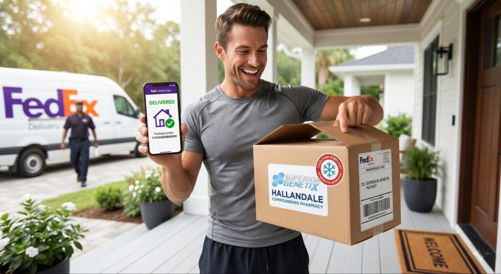 The Only Exception: If you specifically requested that your prescription be shipped to the Superior Genetix Health & Wellness clinic for in-person pickup, this will be arranged and communicated to you separately.